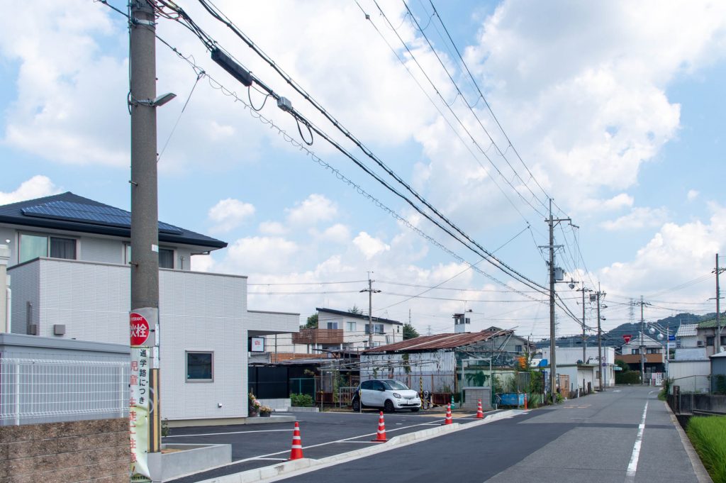 こっちに行くと「たこ焼き屋 中角」が。交差点を右に曲がり進むと交野警察署などが。左に行くと「つつしたラボ」などがあります。
