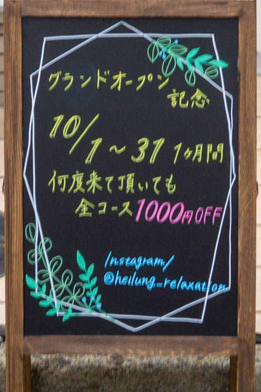 町楠葉に「Heilung(ハイルング)」というリラクゼーションサロンができています。