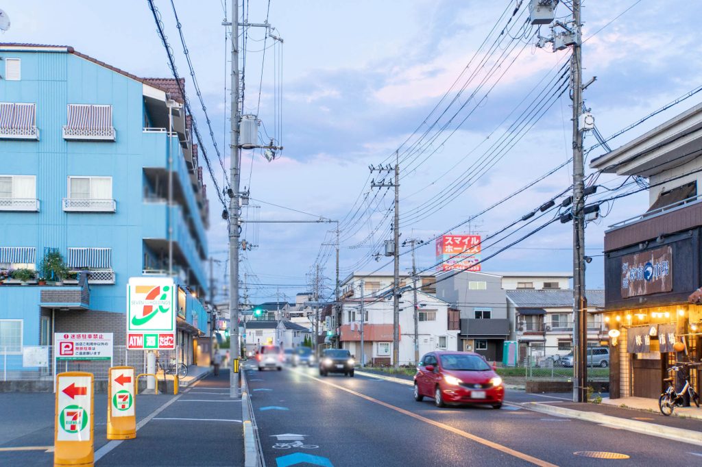 反対方向に船橋小学校などの前を通って中の池公園などの方へ。真向かいにはセブンイレブンがあります。