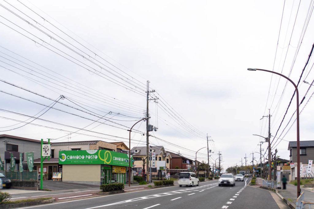 反対方向は大住方面。ここから続く坂道を降りていくとバースデイやスーパーナカガワなどが。