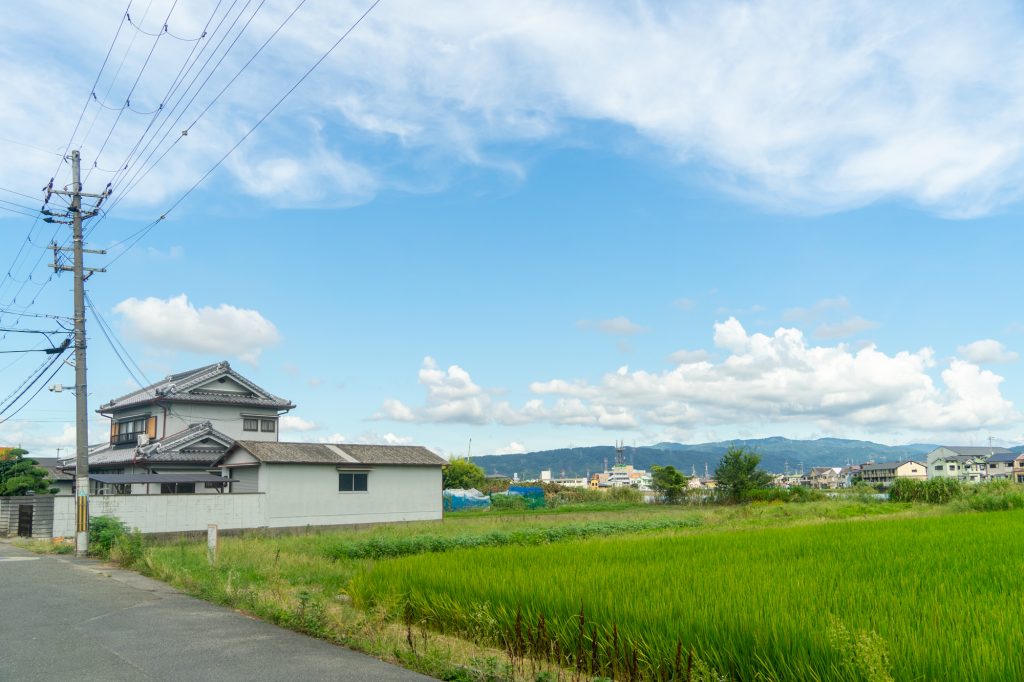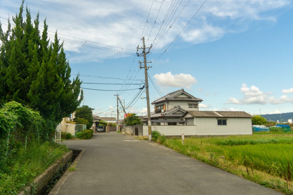 こっちにいくと招提東町の田んぼが広がっていて、抜けた先に国道1号線。