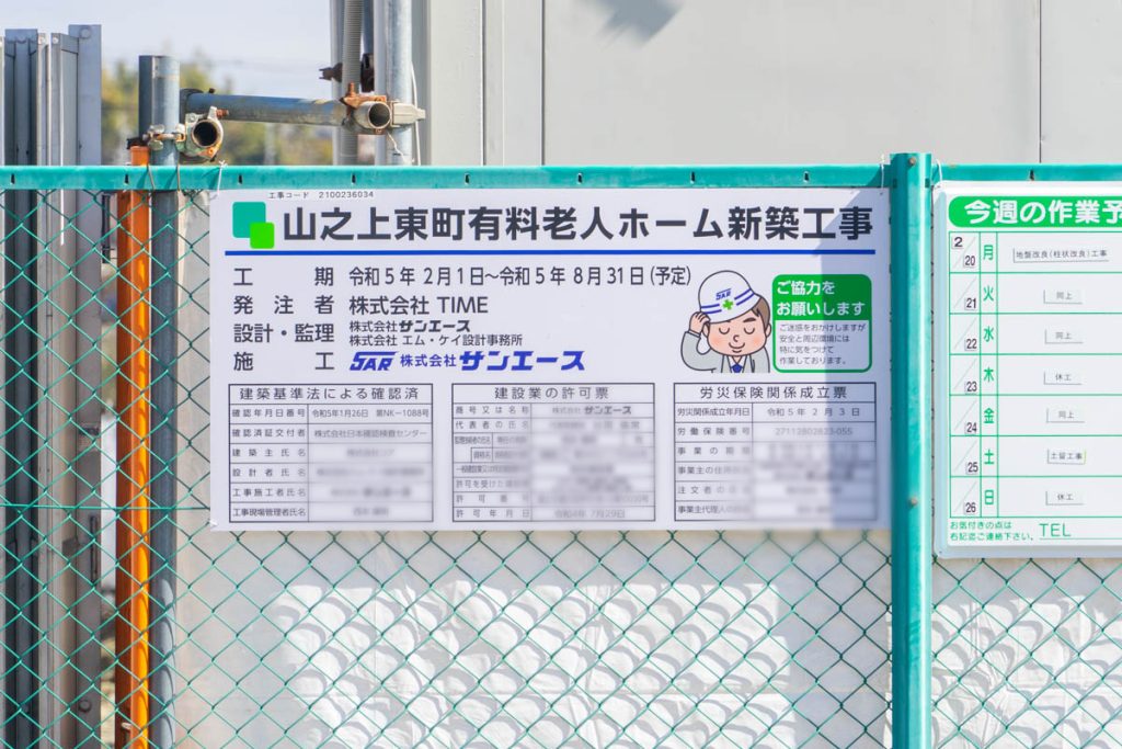 現地にあった看板によると、有料老人ホームができることがわかります。工事期間は8月31日まで予定。夏が終わり始めるころには、建物もほぼ完成しているんじゃないでしょうか。