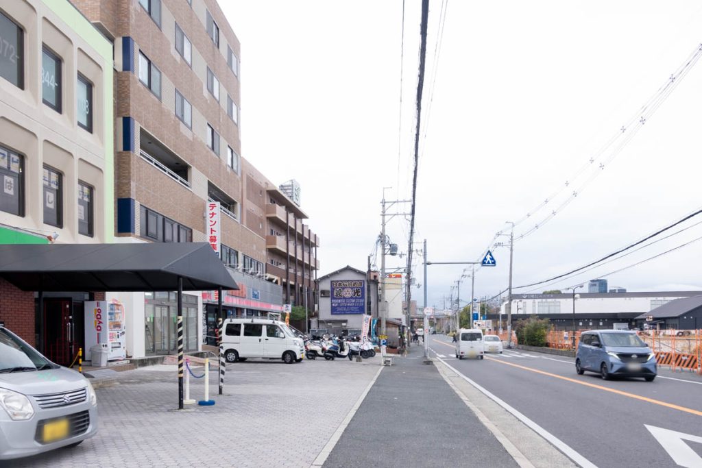 こっちにいくと、枚方市駅方面に進むことができます。同じ建物には「はなまるデイサービス」や「YAMAHA」などが。