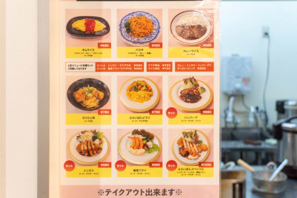 メニューは主に洋食で、オムライスや海老フライ、ハンバーグなどなど。
