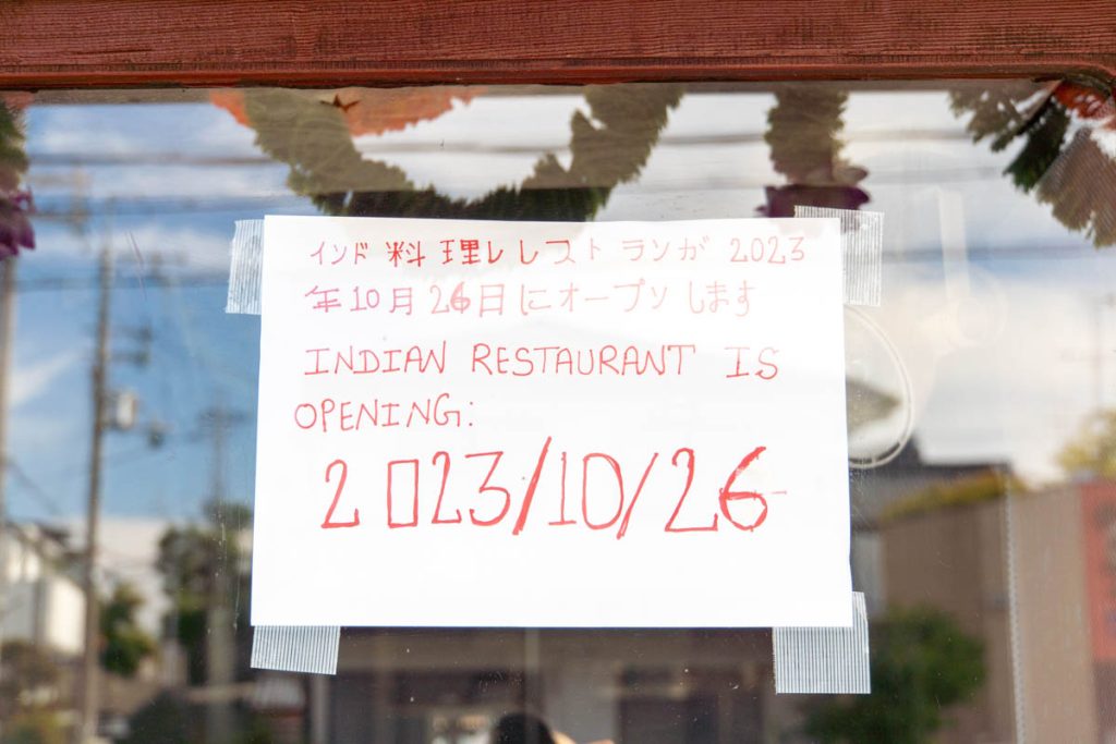 上記によるとインド料理店が10月26日にオープンするとのこと。