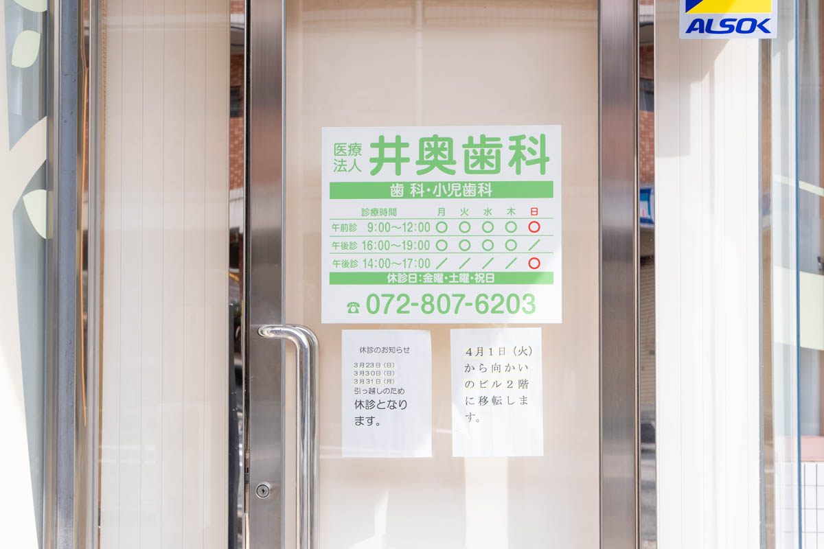 公式サイトのお知らせのページには4月1日に移転したことが書かれています。なおどちらも電話番号の変更はないとのこと。同サイト内で井奥歯科についての紹介もされていました。