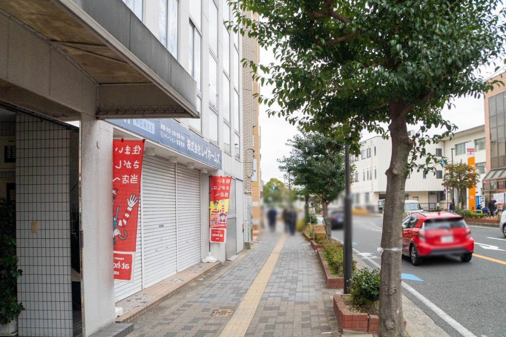 こっちにいくと枚方市役所、枚方市駅です。