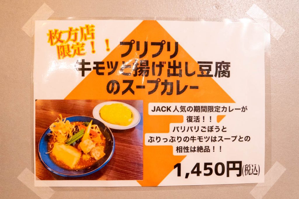 枚方市役所近くに作っていた「札幌スープカレーJACK 枚方店」がオープンしています。