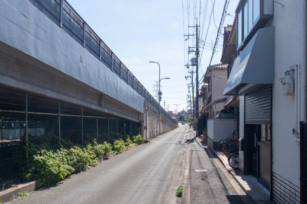 反対方向に進むと、交北公園や河童ラーメン本舗などがあり、交差点「出屋敷西」に出ます。