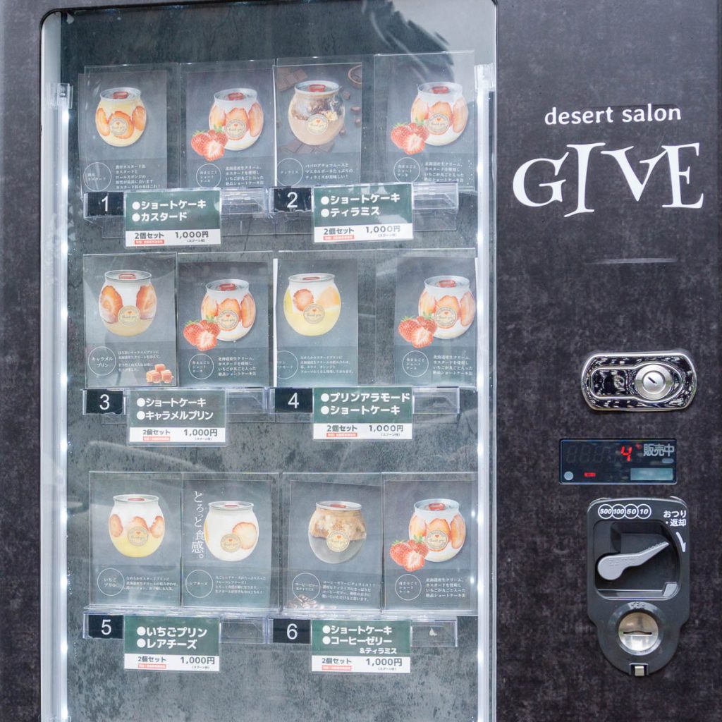 香里園駅そばにスイーツ店「デザートサロンGIVE」の自販機が設置されています。