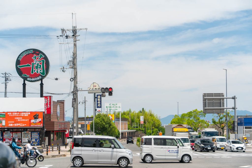 1号線をはさんだ目の前にはくら寿司や一蘭などがある位置です。