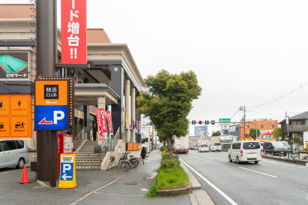 1号線沿いの快活クラブです。こっちにいくと京都方面。ずっと進むとニトリモールなどがあります。