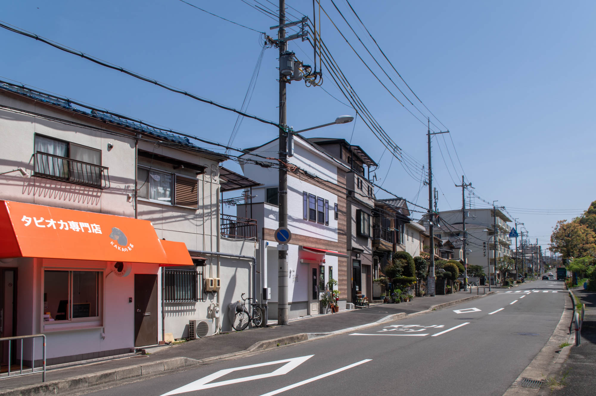 こっちへ坂を下っていくと、馳走中華厨房 はっちんなどが。ずーっと進むと枚方市駅周辺へ。