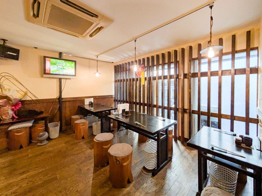 店内を見せてもらいました。テーブル席に、映っていませんがカウンター席なども。