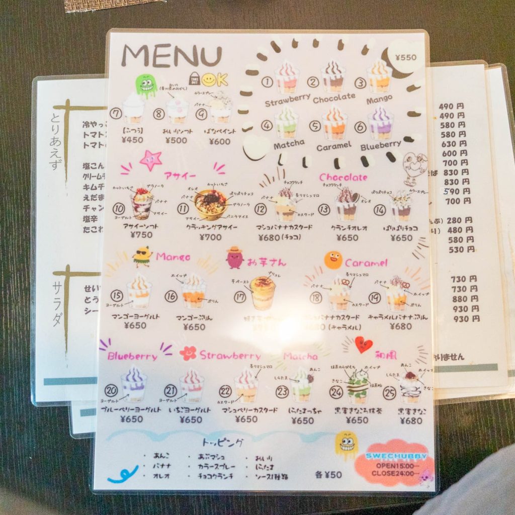 メニュー。すぐそばにある「SWECHUBBY」のソフトクリームも注文可能です。