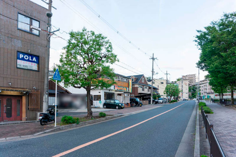反対方向にまっすぐ進むと交差点があり、右に曲がると「アカカベ」や「やまや」などがある方へ行きます。左に曲がると「イロハベーカリー」や「くらわんか餅巴堂」などがあり、枚方公園駅の方へ。