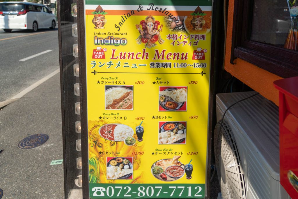 「インディゴ」はインド料理店で、お店ではカレーやナンなどが楽しめるようでした。