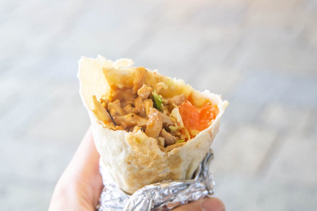 こちらが実際に食べてきたケバブ。お肉がもりもりと入っています。トマトもいっぱい入っており、肉汁と酸味とのコラボがまあ素敵!!