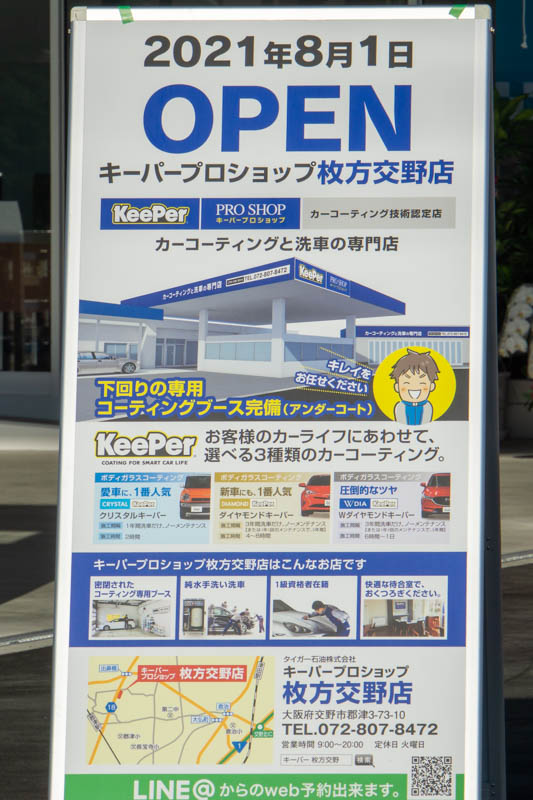 府道18号線沿い郡津に作っていたカーコーティング・洗車の専門店「キーパープロショップ 枚方交野店」がオープンしています。