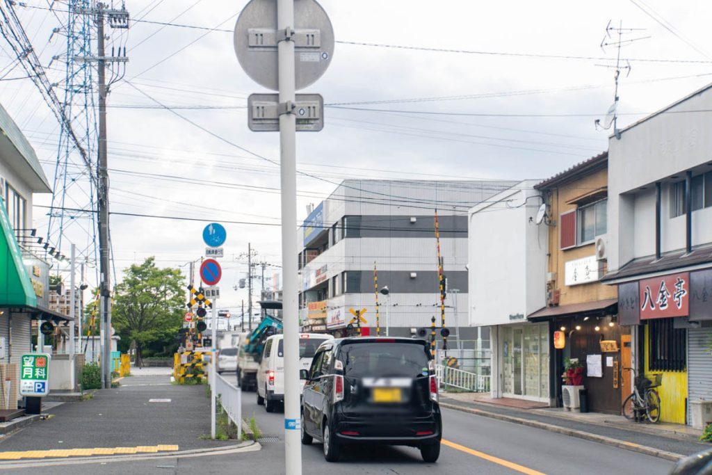 左が交野市駅で右が店舗。駅のすぐ近くです。