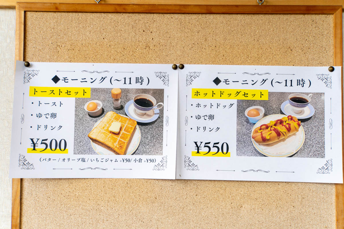 モーニングはトーストやホットドッグ、ランチは定食などもあるようでしたよ。