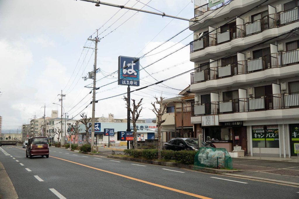 近くにはま寿司があり、こっち方面に行くと府道13号線にでます。
