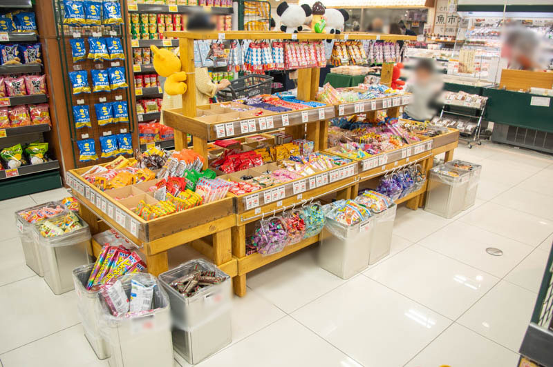 低い位置に駄菓子がおいてあるので、小さな子どもたちでも背伸びすることなく見ることができるはず!