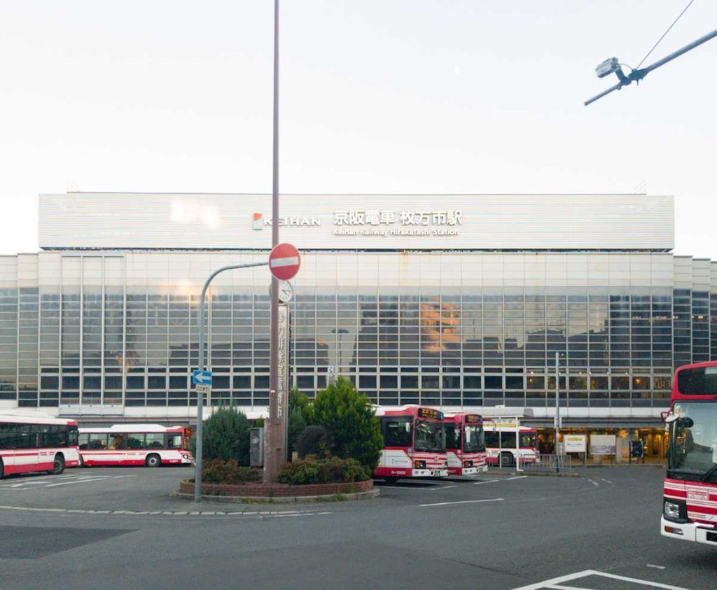 お店に背を向けると目の前が枚方市駅のロータリー。こうしてみるとバスがいっぱい。