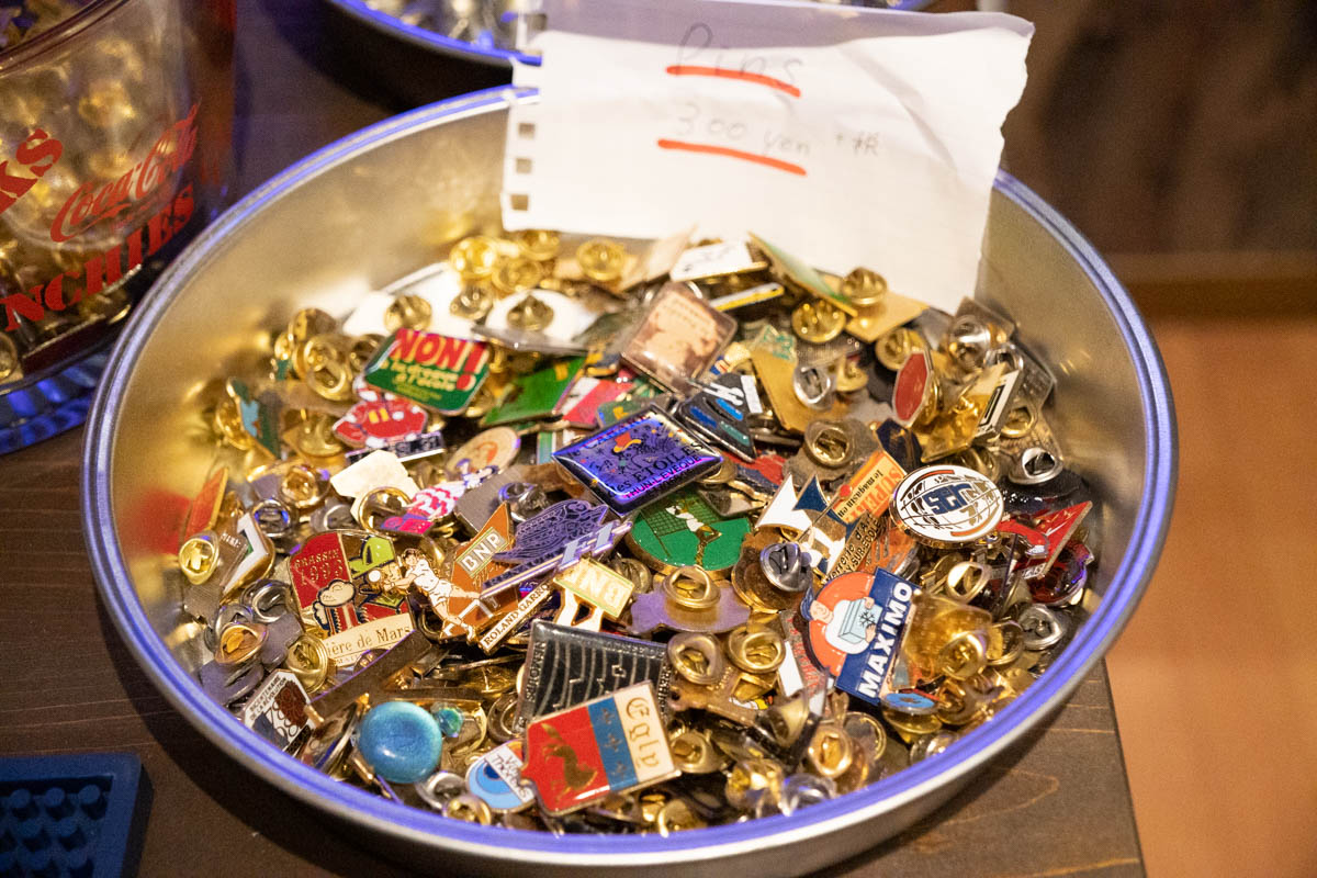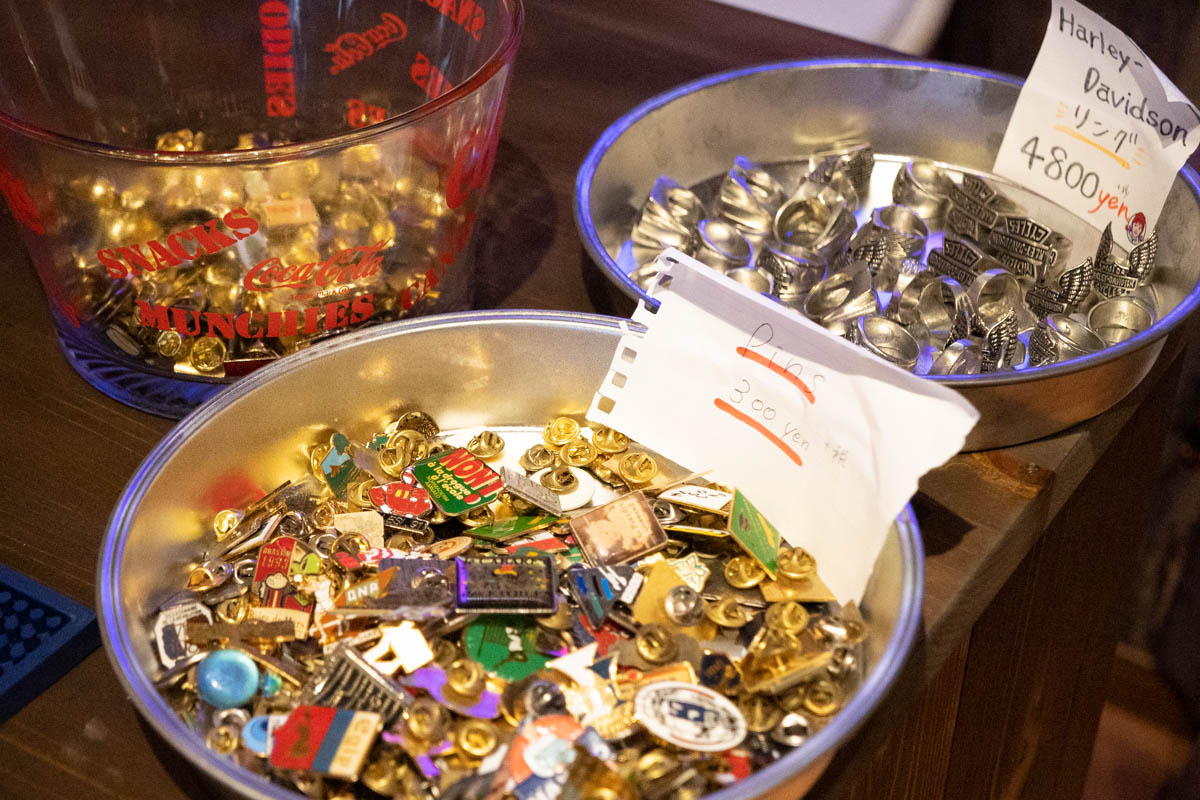 ピンバッジやリングなどの雑貨も。ピンバッジが可愛くて思わず見入っちゃいました!