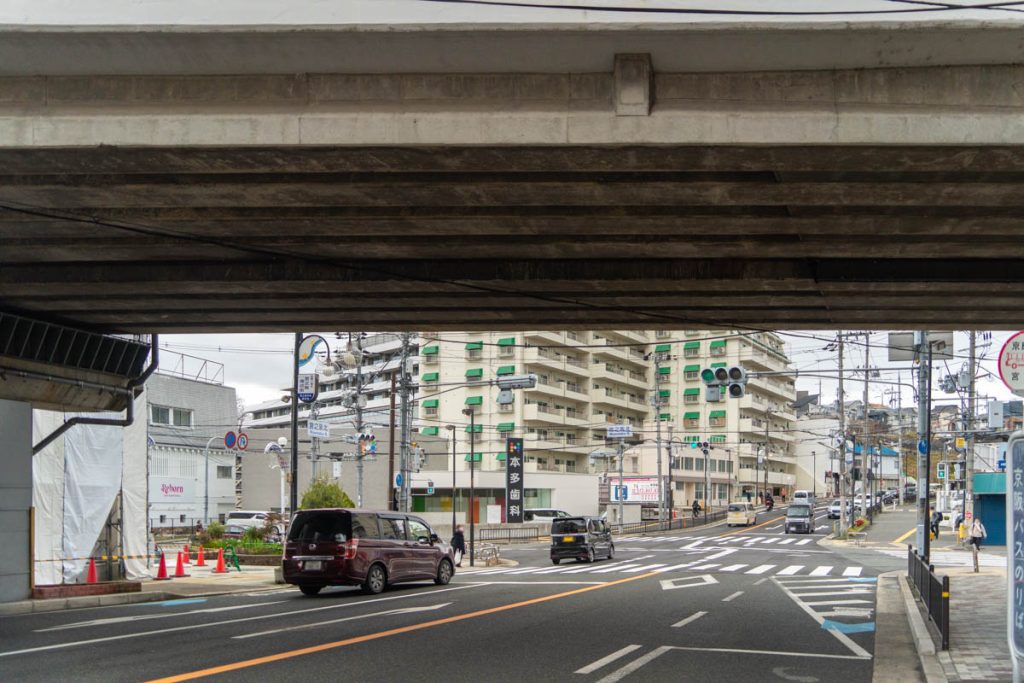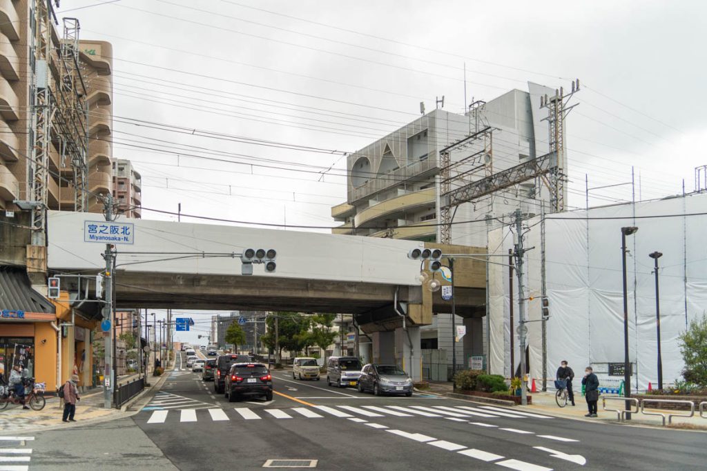 こっちに行くと枚方市駅方面。交差点「宮之阪北」の角にあります。