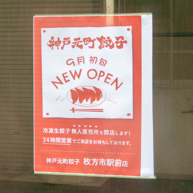 枚方市駅近くに「神戸元町餃子 枚方市駅前店」という生餃子の無人直売所ができるようです。