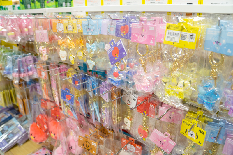そして、K-POPアーティスト関連のグッズ、特に大人気の「BTS」やLINE FRIENDSとBTSのコラボで生まれたキャラクターブランド「BT21」のアイテムが豊富!