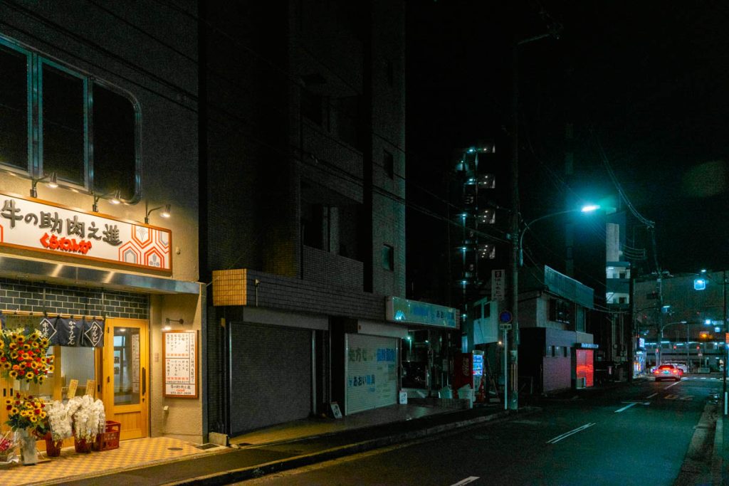 反対方向には町楠葉の住宅街。同じビルには「うお心」や「ホースマン」などが。