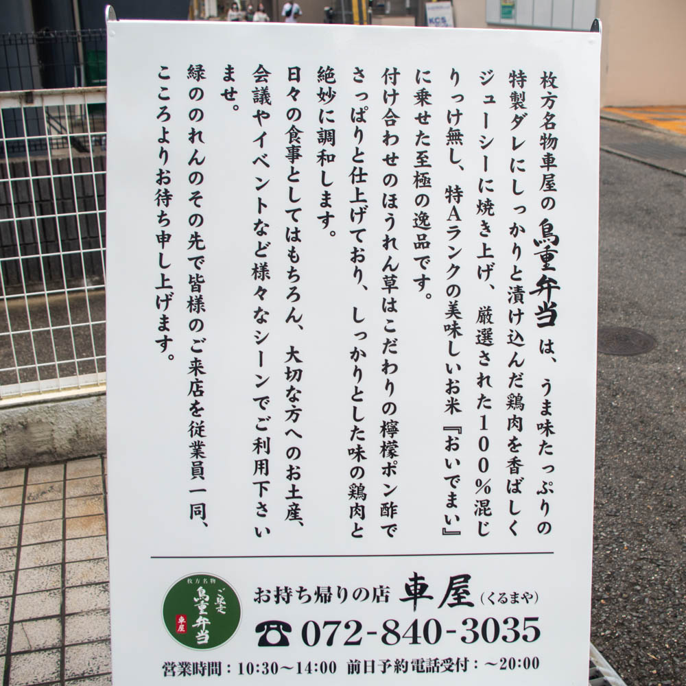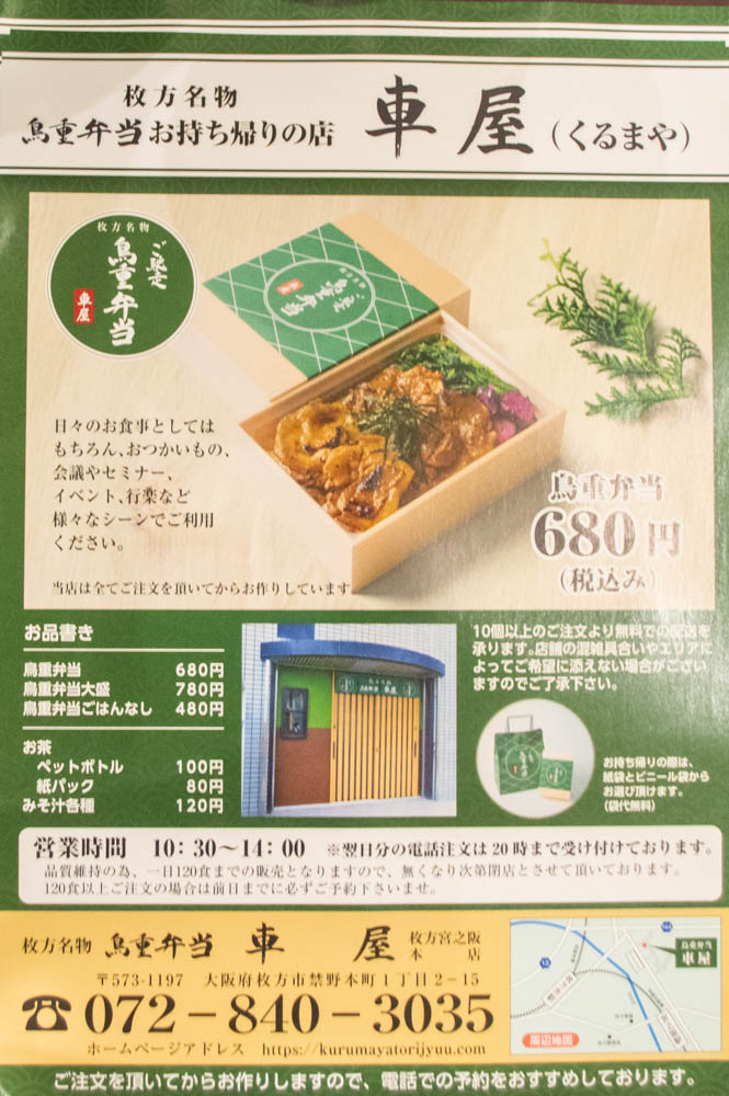 イズミヤ枚方店近くに「車屋」という鳥重弁当のお店ができています。