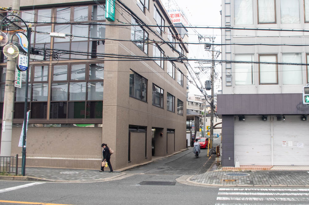 イズミヤのすぐ目の前にある「ほっぷすこっち」と明治安田生命の間にある小道を進むと、右手にお店があります。