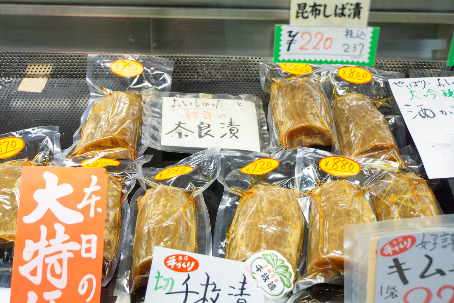 いろんな漬物でいっぱいの店内。どれを買おうか悩んでいると、店主さんやその奥さんが色々と漬物に関して教えてくれます。
