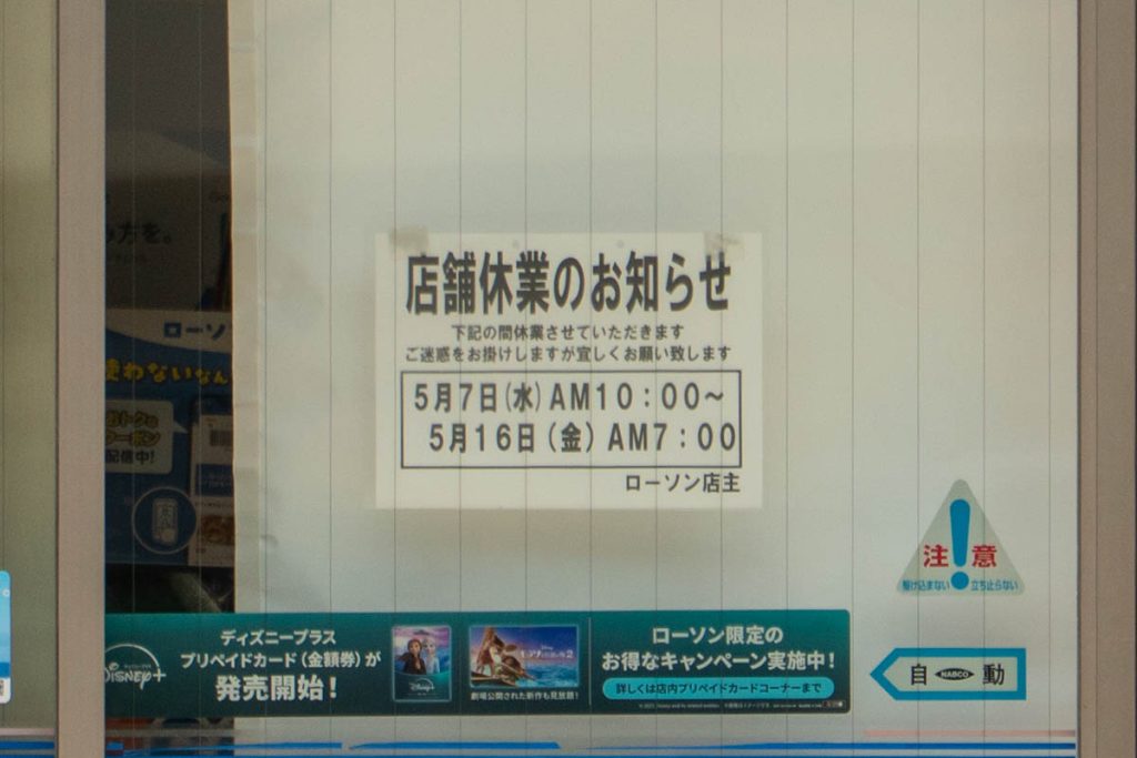 樟葉駅ちかくで利用している人も多いと思われるコンビニですし、よく使う方は休業中はご注意を。