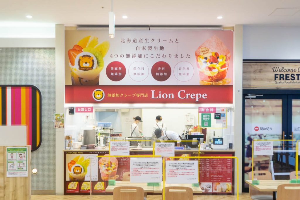最近ではアルプラザ枚方のフードコートにある「10’s CAFE mini」も『Lion Crepe』としてリニューアルしました。