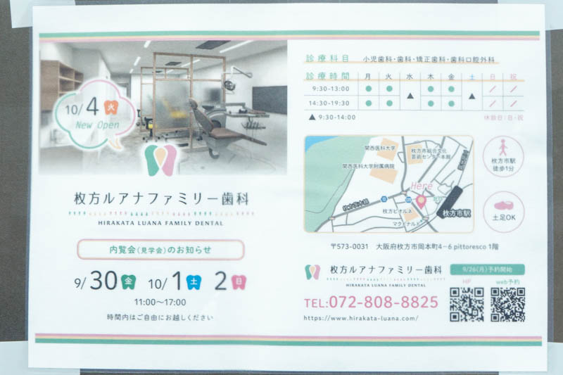 枚方市駅近くに作っていた「枚方ルアナファミリー歯科」がオープンしています。