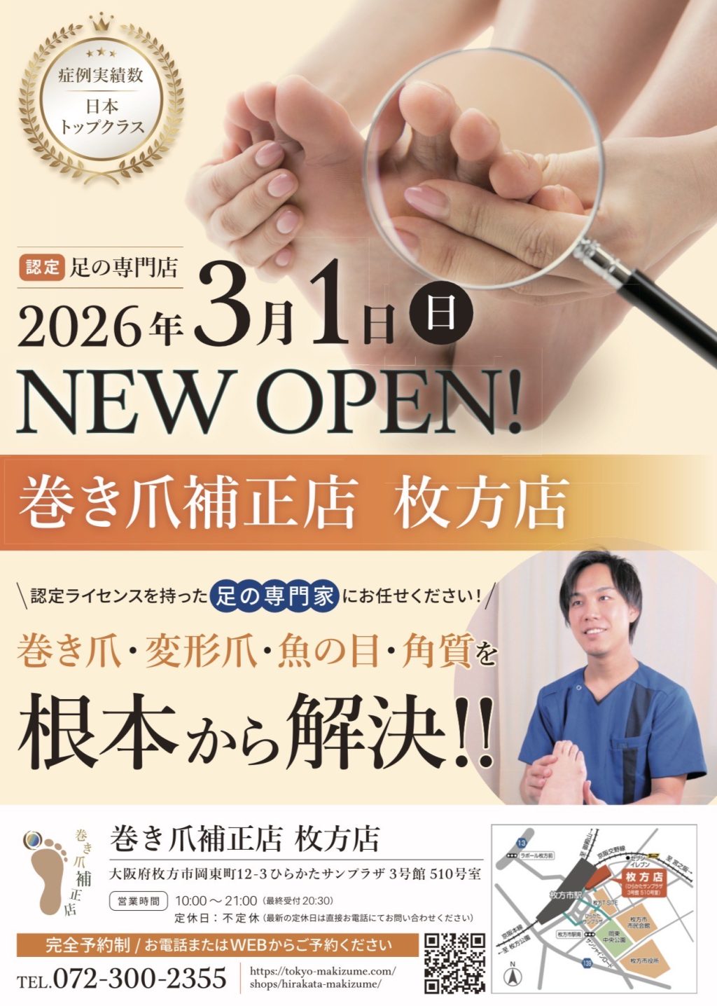 いただいた画像によると、3月1日に「巻き爪補正店 枚方店」がオープンするということがわかります。