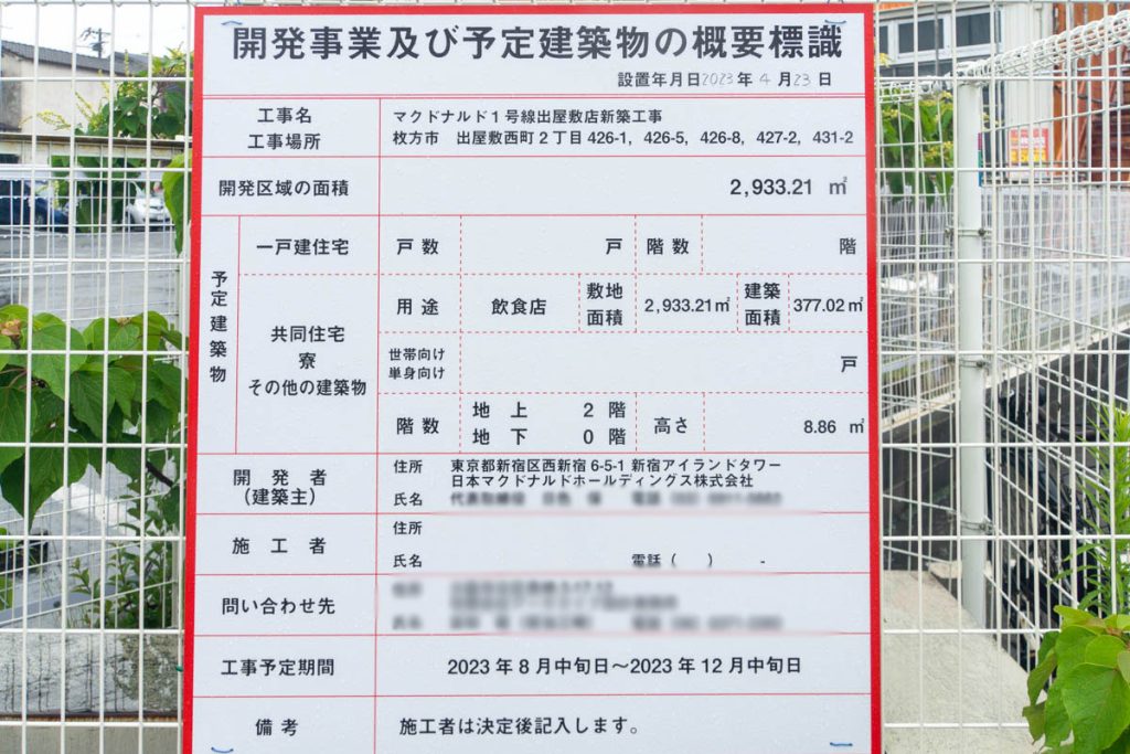 1号線沿い出屋敷西町の「マクドナルド 1号線出屋敷店」が2階建てになりそうです。