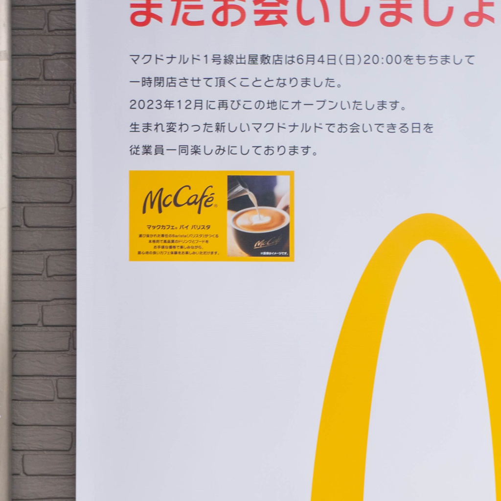 前述の通り「マクドナルド 1号線出屋敷店」は明日6月4日20時に一時閉店。