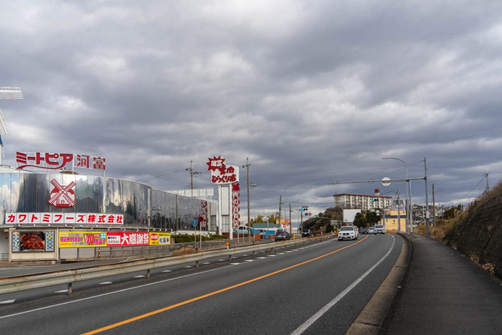 大阪方面は下り坂になっていて、ガソリンスタンドや水素ステーションの前を通って北中振の方へ。