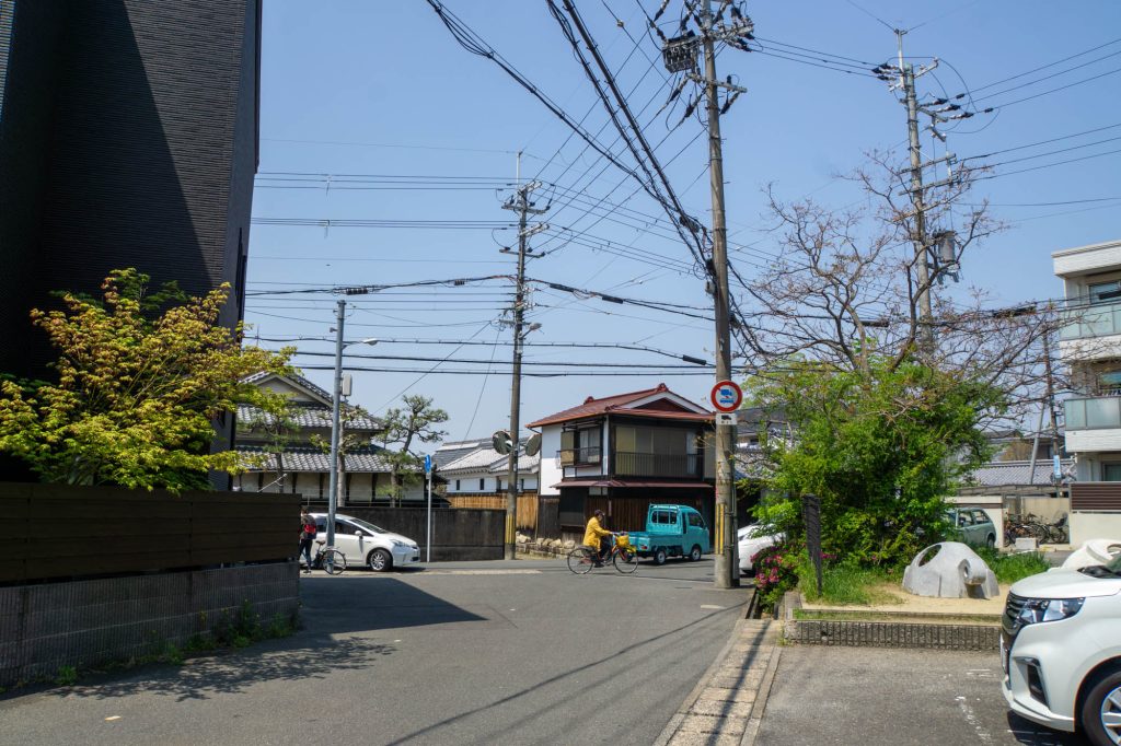 こっちに行くと府道736号線と合流できます。右に行くと松井山手方面。左に行くと長尾駅方面。