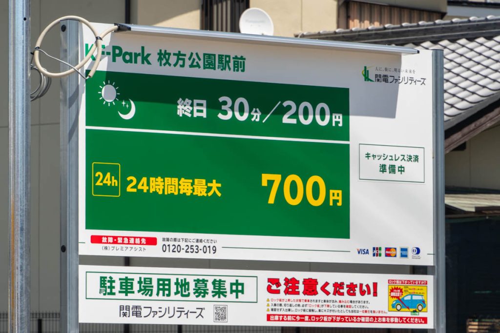 枚方公園駅前にコインパーキング『KF-Park 枚方公園駅前』ができています。