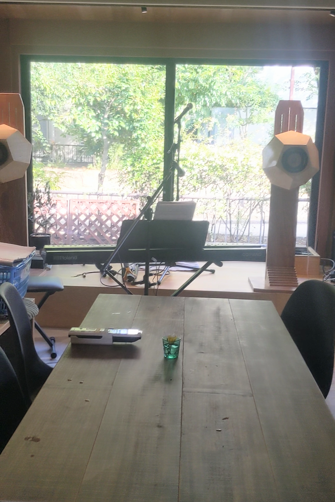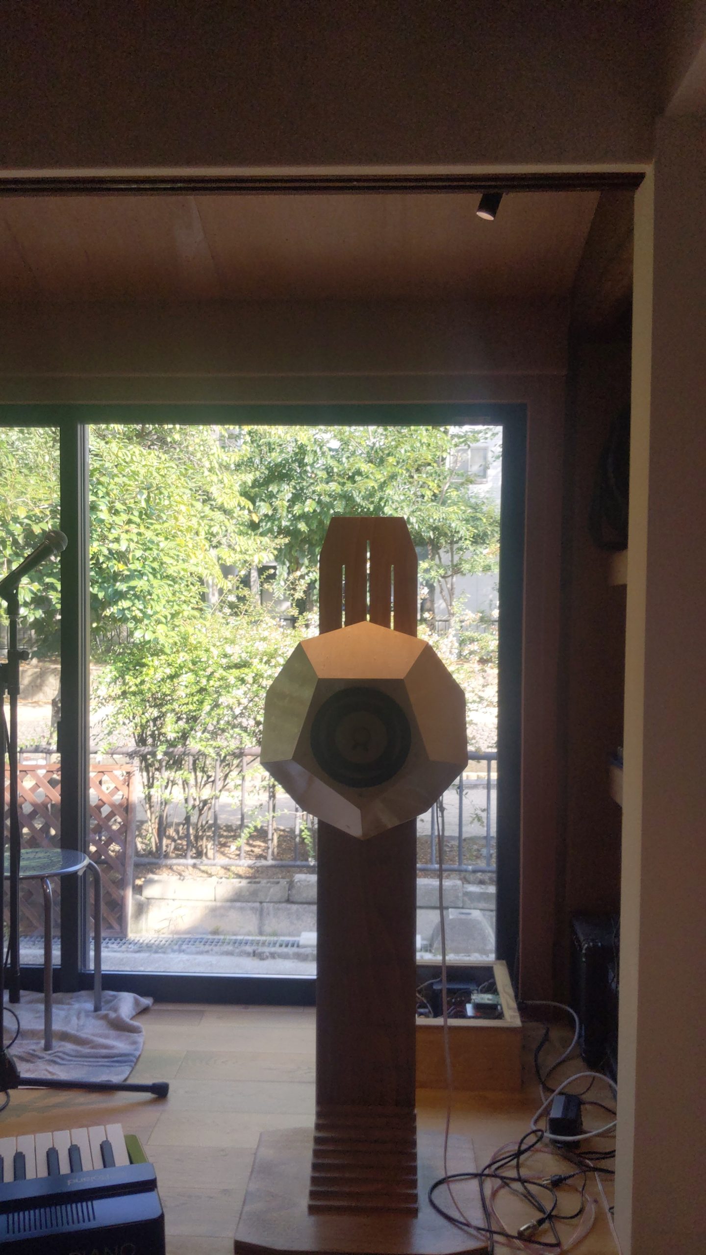 店内も見せてもらいました。オープニングイベントとして音楽ライブも一緒に行われていたとのこと。取材に行った際はイベント終了後でした。めずらしい形の「12面体スピーカー」はこちらのお店の名物なんだそう。