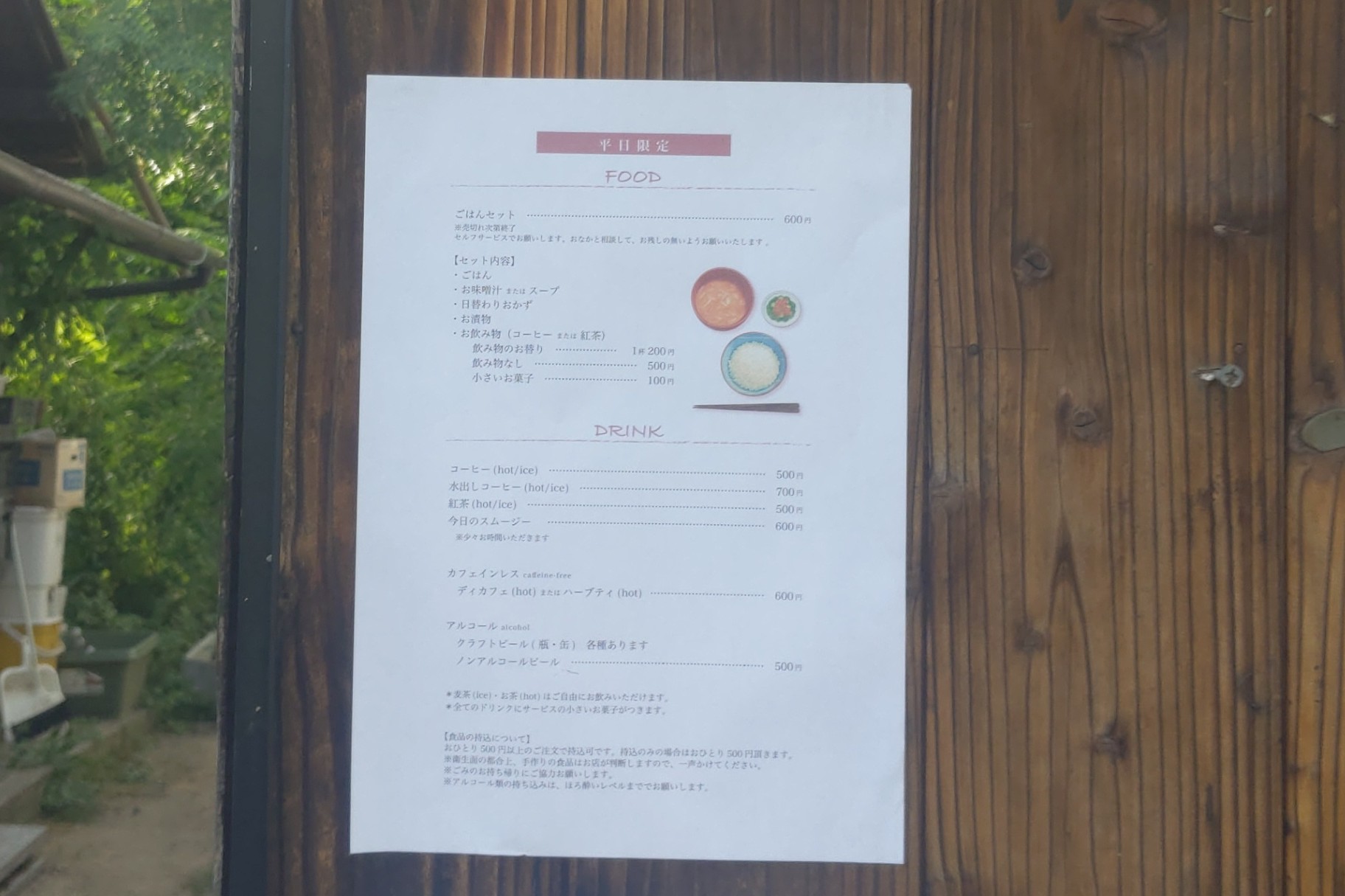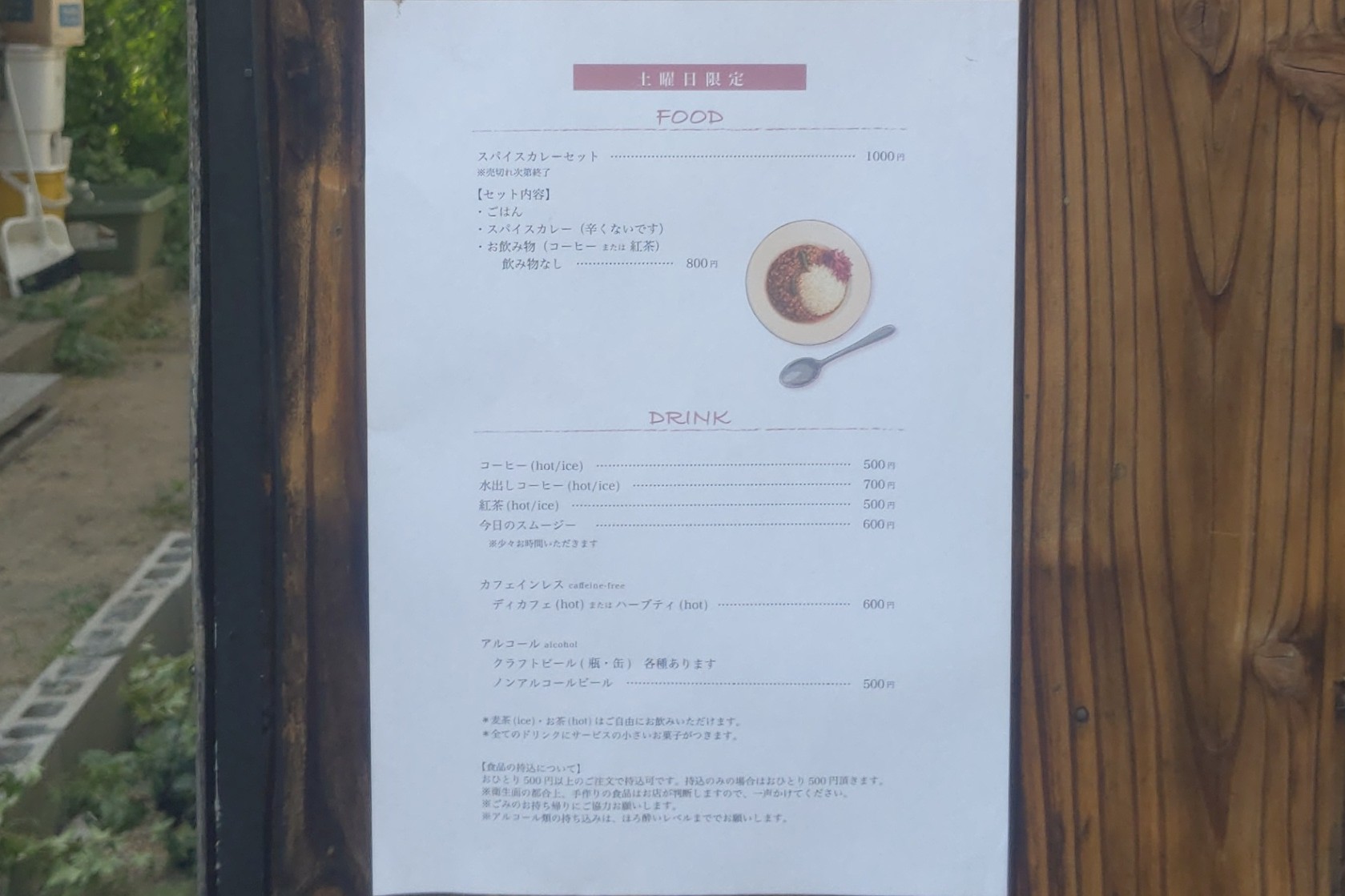 メニュー。平日と土曜日のメニューは違うんだそう。
