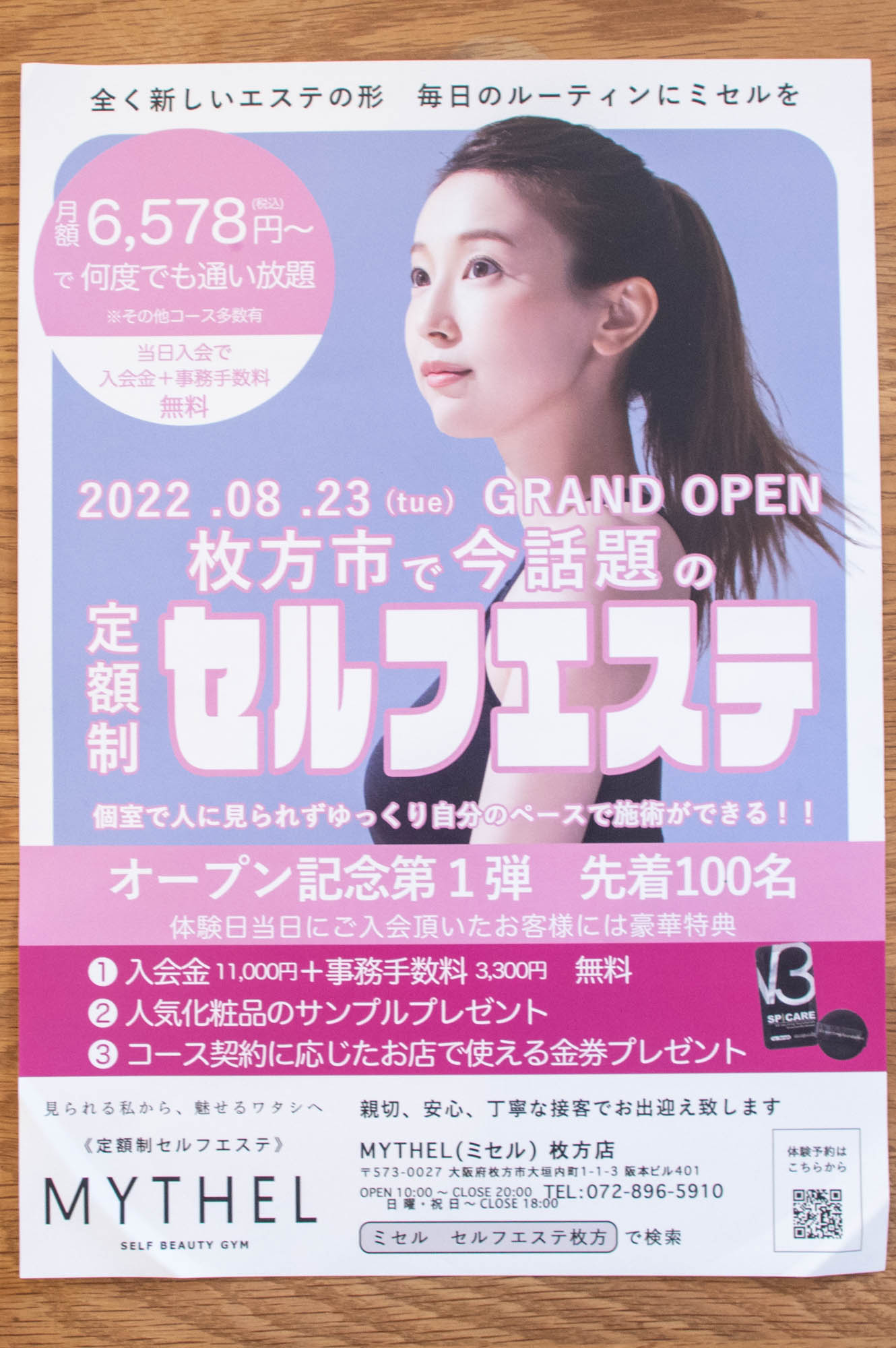 市役所前に「MYTHEL(ミセル)枚方店」というセルフエステ店ができてます。