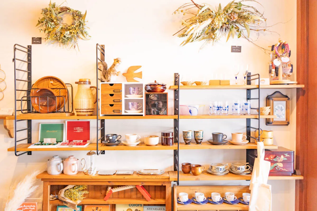 アンティーク食器、雑貨、ハンドメイド商品などが販売されていました。今後は2階などでワークショップやイベントの開催も予定しているそうです。