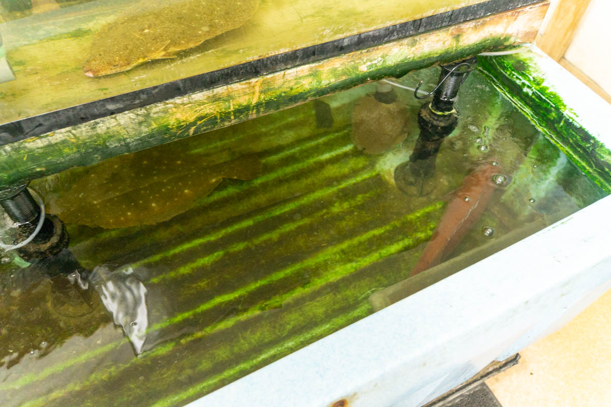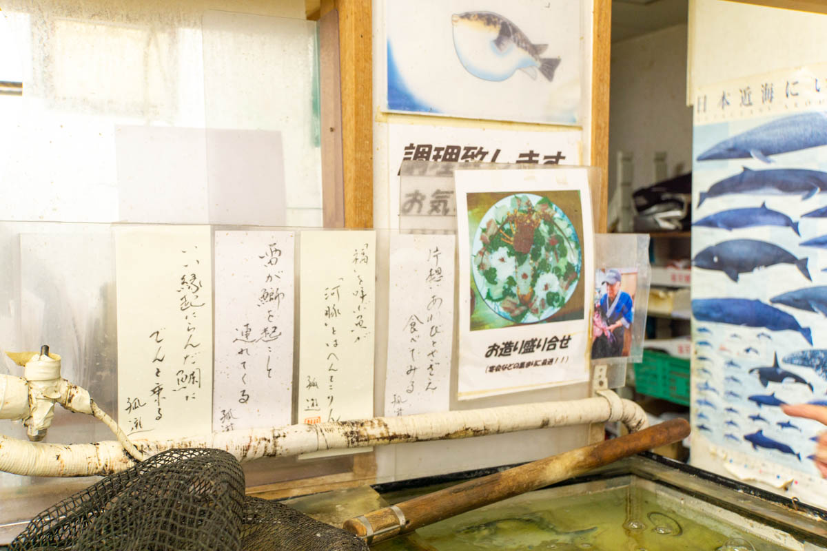 お店には生簀があり、タイやヒラメが泳いでいました。